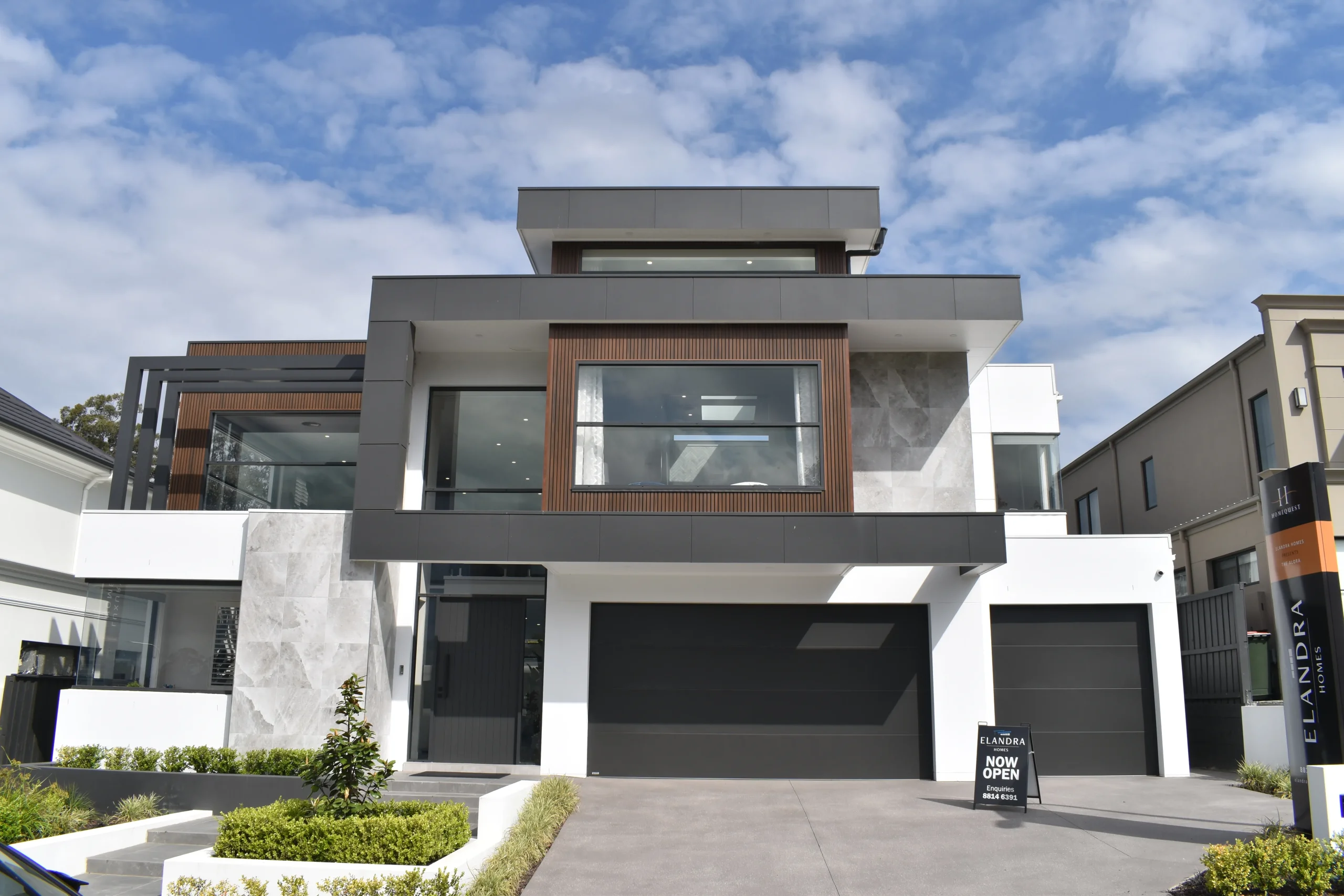 A bold façade with clean lines, textures, and timeless elegance.